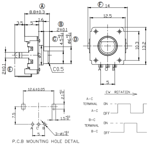 No IP RatingEC12 ตัวเข้ารหัสแบบหมุนติดแผงกลไกแบบรูทะลุ
