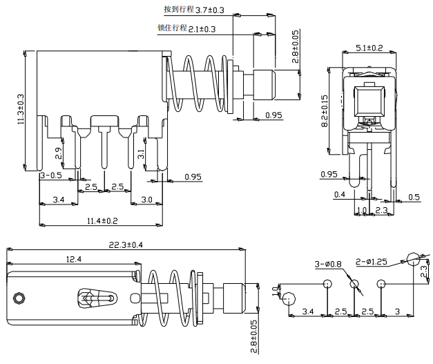 พิมพ์: สวิตช์ปุ่มกดแบบตรง SPDT 3 ขา