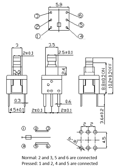 พิมพ์: สวิตช์ปุ่มกดล็อค 6 ขา