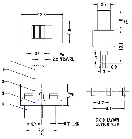 สวิตช์สไลด์โลหะขนาดเล็ก