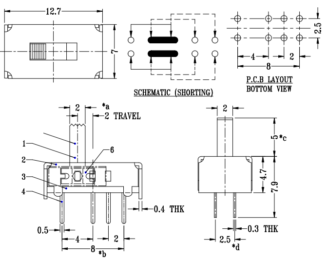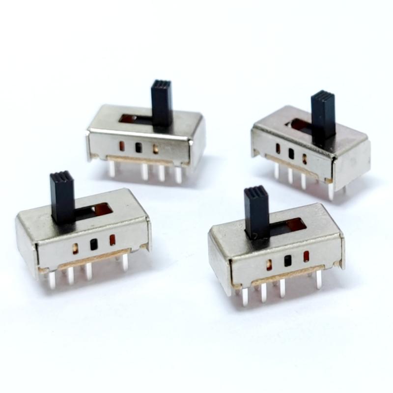 สวิตช์เลื่อน 2P3T เป็นสวิตช์ควบคุมแบบสองขั้วสามจังหวะ (2Pole 3Throw) ที่ช่วยให้สามารถสลับสถานะสามสถานะสำหรับวงจรอิสระสองวงจร (เช่น เปิด/ปิด/เลือกโหมด) ผ่านการทำงานแบบโยก เหมาะสำหรับสถานการณ์ที่ซับซ้อนซึ่งต้องใช้การควบคุมวงจรหลายวงจรแบบซิงโครไนซ์